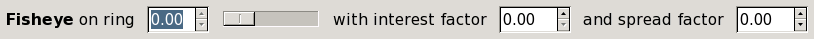 The fisheye controls give more space to a selected ring, compressing all the others. The slider controls which ring gets the most attention. The interest factor is how many times greater the ring spacing is for the chosen ring than it would be with no fisheye. The spread factor ranges from −1 to 1. It controls how many adjacent rings are expanded around the selected ring, with higher numbers meaning more spread.