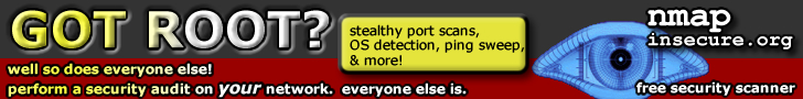 Nmap is free software, which means we cannot afford advertising campaigns or a marketing department. Nmap growth is thus dependant on grass roots linking and recommendations by users like you. If you find Nmap useful, we would always appreciate a link on your page. We (and contributors) have also created some graphics you can use to link this page. If you are artistically inclined, we welcome contributions of new banners, buttons, etc. Please try and use the normal 728x90 or 468x60 size for banners since that is what most sites are set up to use. We are particularly interested in new 728x90 banners since we have so many great 468's already.